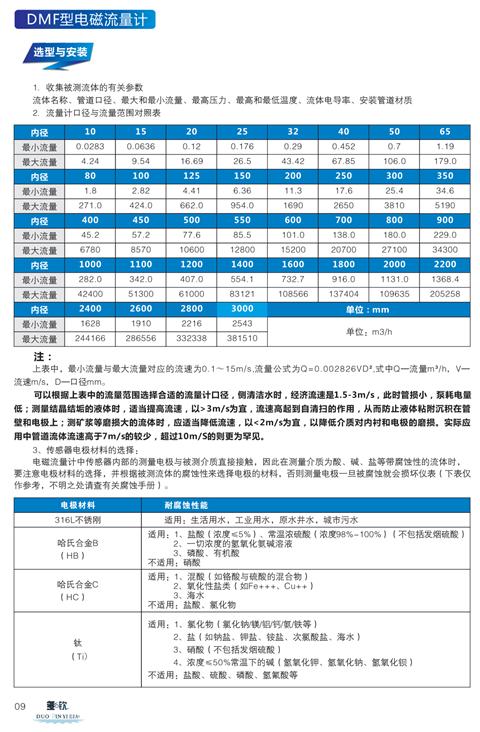 電磁流量計選型樣本: